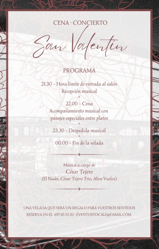DIA DE SAN VALENTIN – Cena + Concierto – Sábado 14 de Febrero