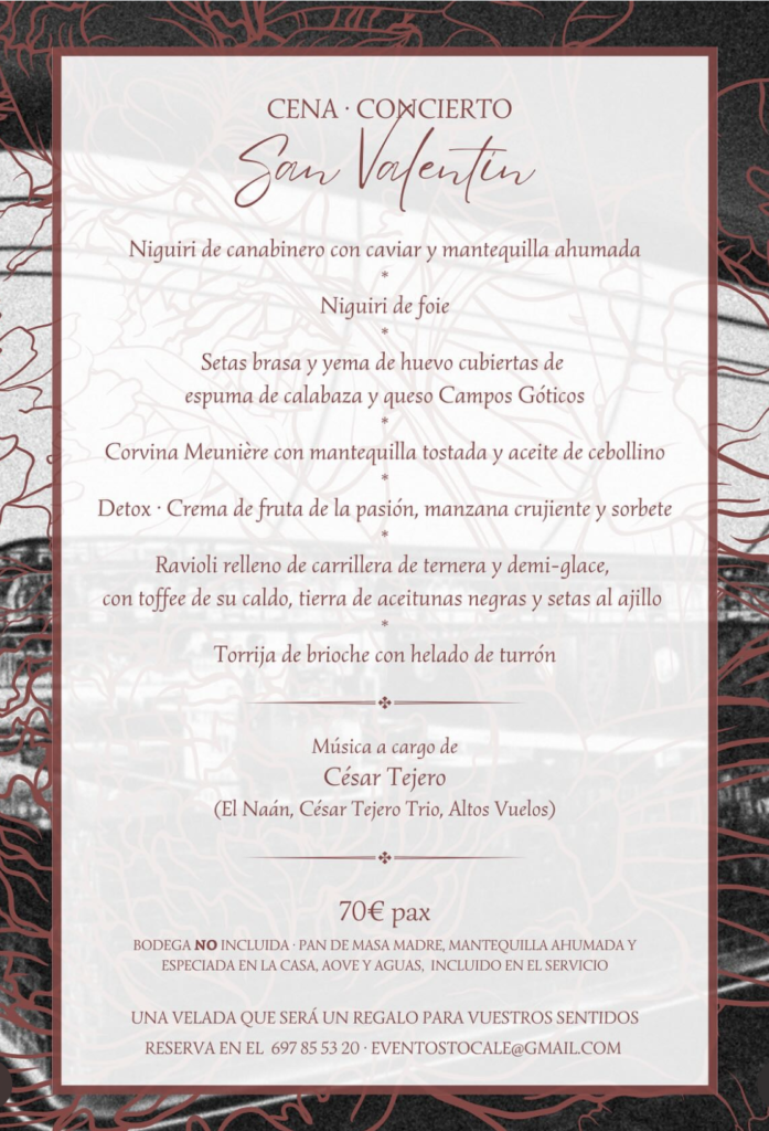 Esa noche contaremos con la presencia de César Tejero, músico de El Naán, multiinstrumentista y creador de atmósferas sonoras cargadas de sensibilidad. Su interpretación acompañará los momentos del servicio, con pasajes musicales entre platos y una despedida especialmente diseñada para cerrar la velada con emoción.